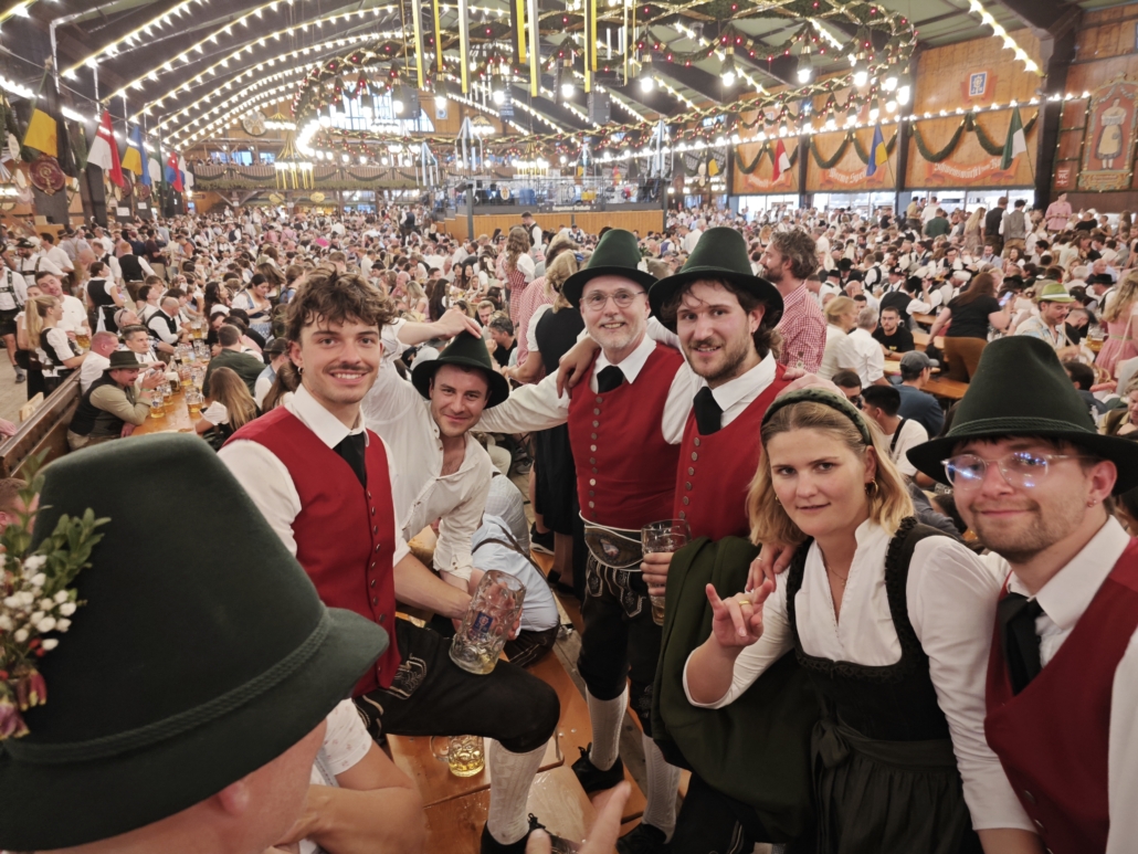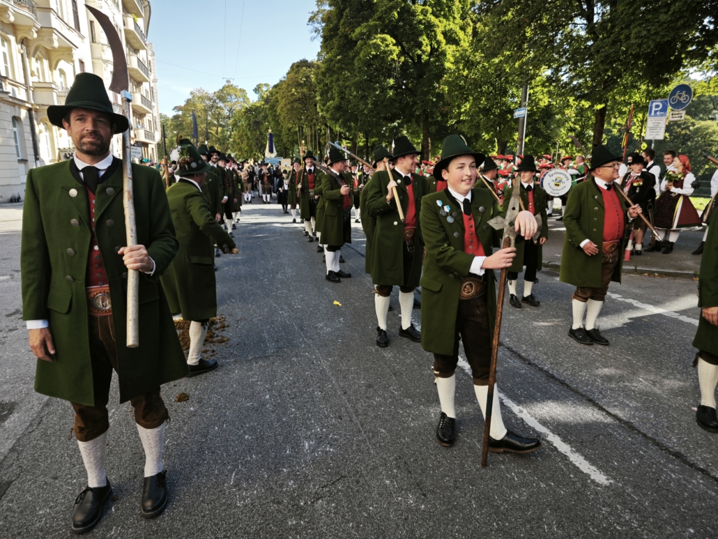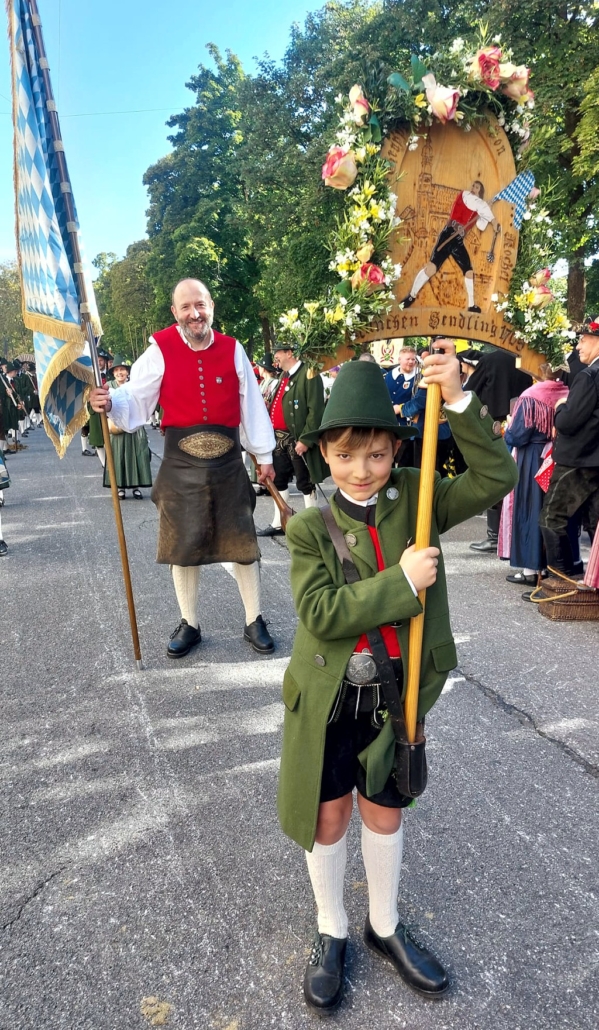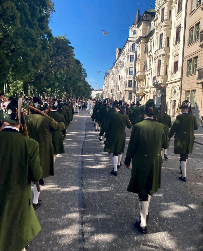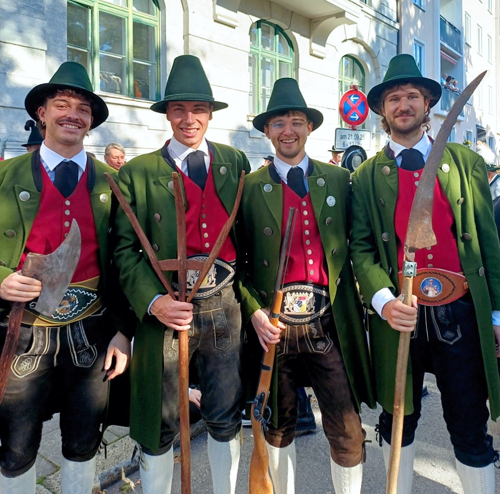 Bei herrlichem Wetter fanden sich am Sonntag früh 3 fesche Marketenderinnen, ein kräftiger Taferlbua und 39 schneidige Kochler und Gastgeher in der Widenmayerstraße ein um pünktlich zum Start des Trachten- und Schützenumzugs zur Wiesn 2025 in Formation auf die Maximilianstraße einzuschwenken.